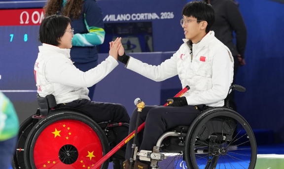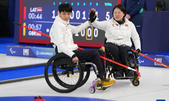 冬残奥会——轮椅冰壶混双循环赛:中国队胜意大利队