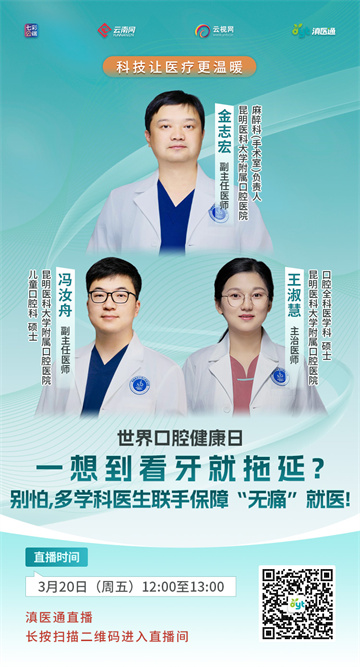 什么是脑卒中,哪些患者必须做介入手术?从发病到接受手术,最佳的时间窗口是多久?3月23日(周一)12:00至13:00,专家做客滇医通直播间为您解答,欢迎扫码观看。