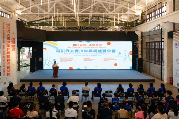 云南省人民政府外事办公室相关负责人介绍今年以来云南省3次向马尔代夫派出乒乓球教练、与马尔代夫乒乓球协会签署合作协议等体育交流合作成果,并表示希望马尔代夫青少年朋友通过此次夏令营提升球技、收获友谊,传承两国世代友好情谊。