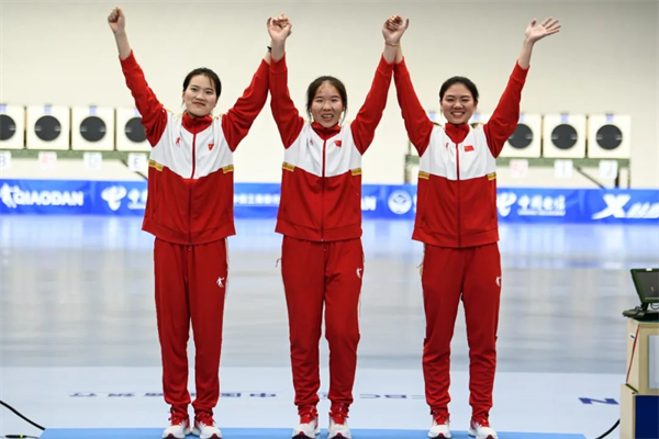 射击项目,中国选手共取得2枚金牌。在男子10米气手枪决赛中,胡凯面对3名韩国枪手的重围,弹无虚发,射落金牌。女子25米手枪团体决赛中,由熊亚瑄、王珂怡、林雅茜组成的中国队以1735环的成绩夺得金牌。