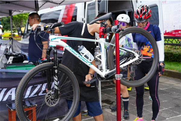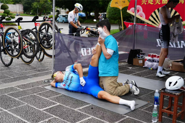 在赛事起终点的格兰芬多集市内,也设置了社会体育指导员志愿服务点。两站高强度的比赛中,由于赛道坡度大、距离长、难度高,不少选手在比赛过程中出现了抽筋的情况,选手们的自行车也在比赛中难以避免地出现故障。选手们回到起终点后,在此服务的社会体育指导员们也纷纷行动起来,帮助选手进行赛后拉伸放松,运用专业知识帮助选手们排除车辆故障,调试自行车,保证选手们能够带着自己的爱车,以良好的状态顺利完成两站比赛。