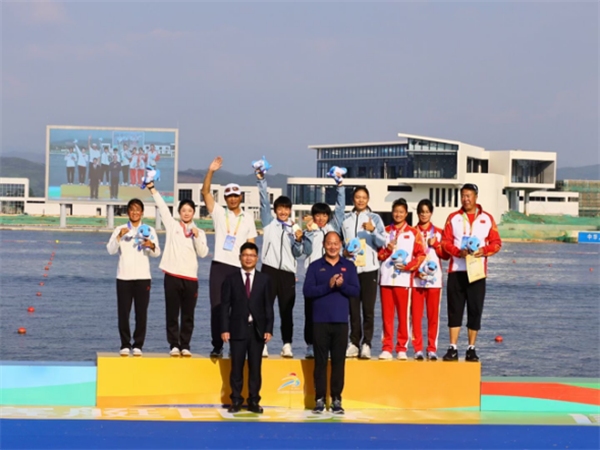 为期四天的比赛,云南省皮划艇运动员和教练员们努力拼搏,全力以赴展现优秀的竞技水平,共参加5枚金牌的角逐,严红艳和李丽搭档出战女子双人划艇500米比赛获得金牌,严红艳和李诗洋出战女子单人划艇200米比赛分别获得铜牌和第九名,李丽和李幸烘出战女子单人划艇500米的比赛分别获得第四名和第九名,董树祥和陈国庆出战男子双人划艇500米和1000米的比赛,均获得第六名。