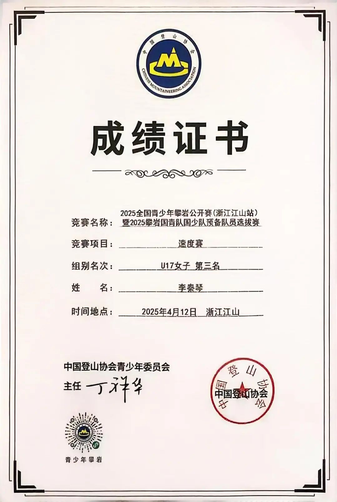 相信这位年轻的攀岩新星未来可期在赛场上再创佳绩绽放更加耀眼的光芒!