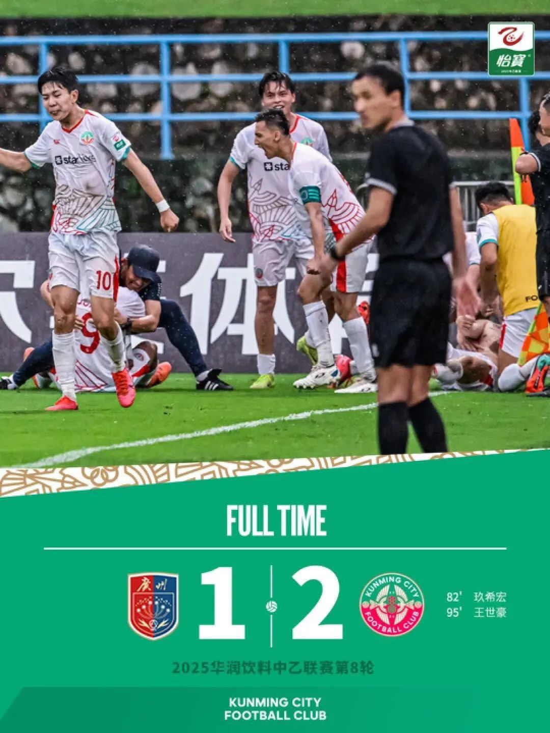 5月6日下午,2025中国足球乙级联赛预赛阶段第8轮比赛打响,昆明城星足球俱乐部做客广州增城区康威运动场挑战广州蒲公英。比赛中,昆明城星在先失一球的不利局面下,凭借玖希宏·吐依洪和王世豪的进球实现逆转,最终以2比1战胜对手,成功从客场带走3分。