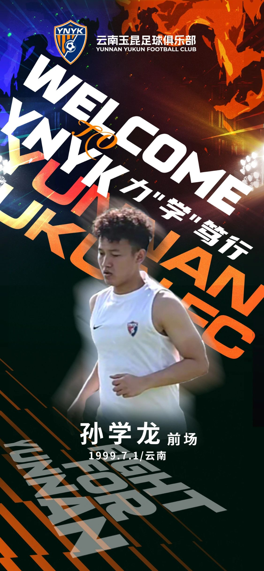 2025年,云南玉昆俱乐部带着三年四级连跳、中甲冠军的荣耀“杀进”中超赛场,想要重写云南足球传奇。1月20日,俱乐部官宣孙学龙转会加盟,“很荣幸,我如愿以偿,回到家乡球队。我希望我的回归能帮助家乡球队在中超的赛场上走得更远更好。”当被问到穿上云南玉昆球队球衣那一刻的感受时,孙学龙说:“有了归属感,未来,想为家乡球队全力以赴。”