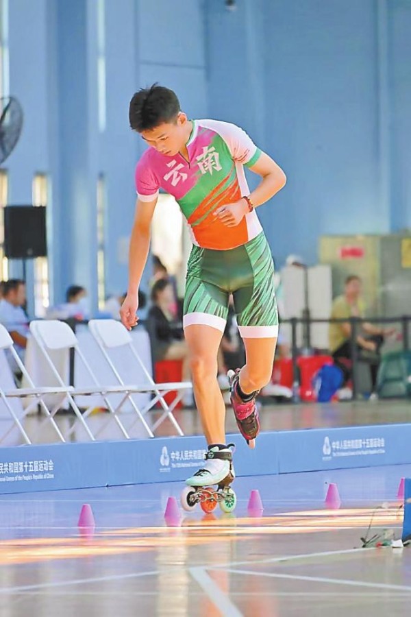 10月15日至19日,第十五届全国运动会群众比赛轮滑项目决赛在广东惠州举行。云南省轮滑代表队运动员李佳瑞在轮滑自由式速度过桩项目中夺得金牌。