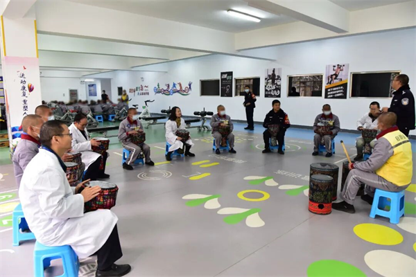 心理团辅环节,采用省五所创新的“鼓圈音乐疗法”,专家团队、警察与艾滋病戒毒人员围坐互动,以鼓声为媒介,实现跨身份的情感共鸣。参与者在节奏中释放压力、建立连接,有效缓解社交焦虑,重塑积极心态。活动现场洋溢着平等包容的氛围,生动诠释了“零歧视”的防艾理念。正如一位艾滋病戒毒人员所言:“鼓声里,我感受到了被接纳的温暖,忘记了自己的特殊身份。”