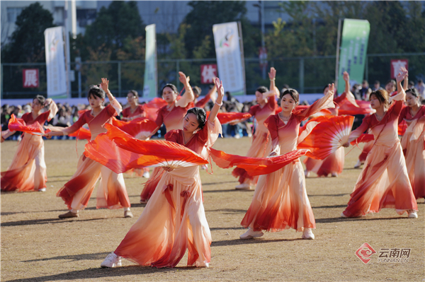 “边超”开幕式上,主办方滇西科技师范学院精心准备了一场精彩纷呈的文化盛宴。从传统非遗到现代歌舞,从诗朗诵到高科技展示,呈现出一幅“各美其美、美美与共”的文明交流画卷。在《龙腾狮跃》表演中,金龙翻腾展现雄风,醒狮跳跃彰显活力。这种源自中国传统文化的表演形式,以其独特的魅力吸引了各国学子的目光;紧接着上演的民族舞《民族团结心连心》则将多元民族文化融为一体。演员们身着各色民族盛装,用优美的舞姿展现了各民族像石榴籽一样紧紧相拥的美好画面;诗朗诵《体育为舟,强边有我》则以铿锵有力的话语,表达了青年扎根边疆、建设祖国的决心与担当。“边超”开幕式上的文化盛宴,生动展现了中华优秀传统文化的包容性与创新活力,为不同文化背景的青年学子搭建了情感共鸣的桥梁。