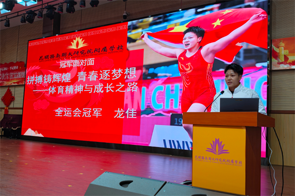 原标题:冠军进校园!云南摔跤运动员龙佳走进昆明西南联大研究院附属学校分享奋斗故事