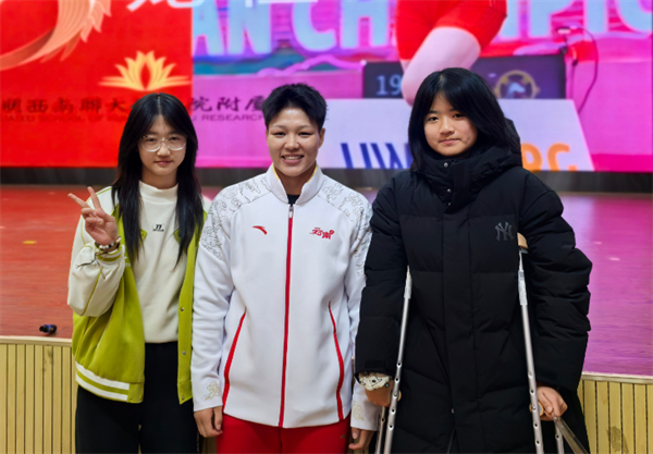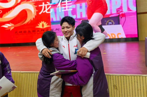 12月3日,第十五届全国运动会女子摔跤68公斤级冠军龙佳,走进昆明西南联大研究院附属学校,与师生们近距离交流,传递体育精神,分享自己关于坚持、拼搏与热爱的真实故事。