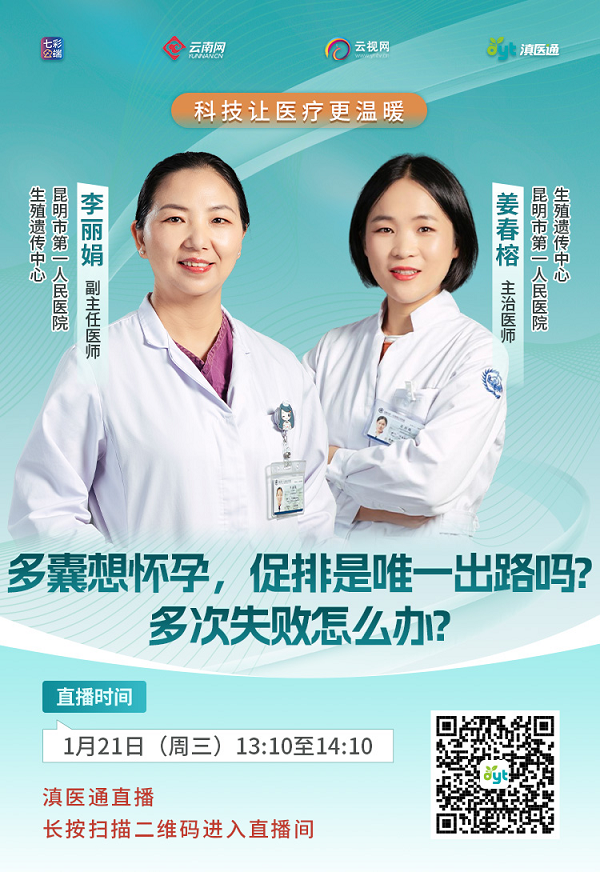 多囊卵巢综合征(PCOS)作为育龄女性常见的内分泌代谢疾病,常常与“不孕”“难孕”等标签绑定,让不少患者陷入焦虑。改善多囊有哪些方法?多囊想怀孕,促排是唯一出路吗?1月21日(周三)13:10至14:10,昆明市第一人民医院生殖医学中心专家做客滇医通直播间,为你深度解析多囊备孕的科学路径。