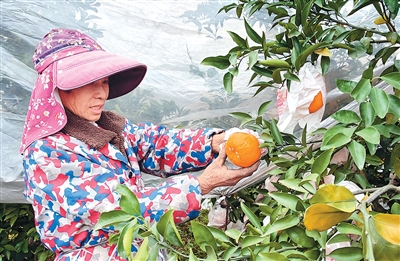 1月24日,在四川省宜宾市江安县四面山镇,果农在检查耙耙柑生长情况。