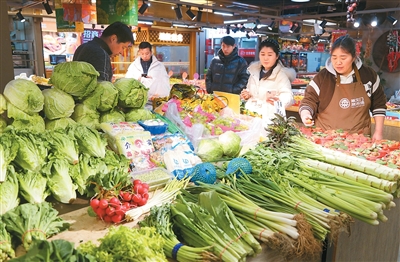 1月29日,市民在北京市东城区一家蔬菜市场挑选新鲜蔬菜。