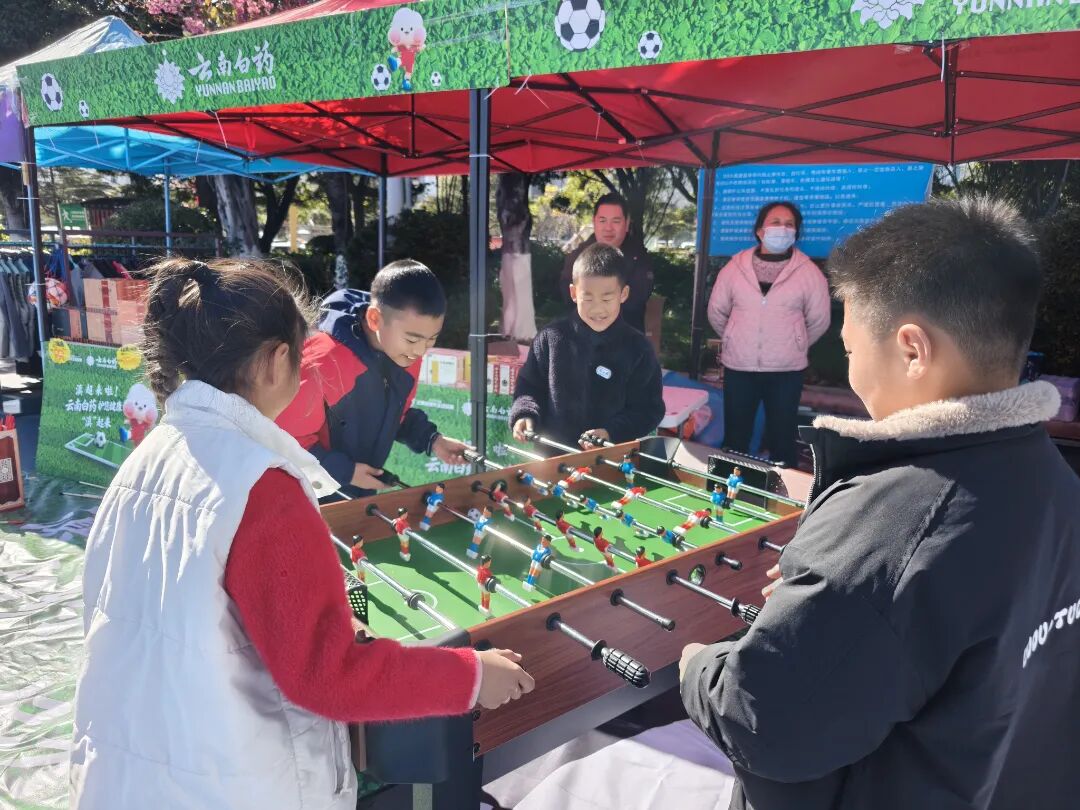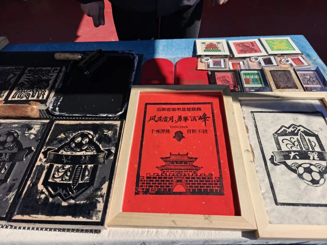 风花雪月秀滇超,赛事场馆外,滇超集市热闹非凡,近40个展位集合了农特产品展销、非遗文创体验、美食饮品和旅游宣传等不同商户,大理的扎染、甲马、牛奶、乳扇、啤酒等地方特色产品广受欢迎。