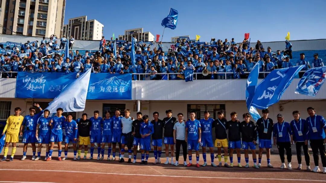 场内场外,一支由大理球迷组成的“第二战队”也不断壮大。来自各行各业的球迷利用业余时间参与排练,“95后”小伙罗浩玮参加球员选拔未入选后,决定以加入球迷战队的方式支持大理队。从鼓点、口号、队歌的一遍遍练习,到周末凌晨共同乘坐大巴车奔赴客场,球迷群体与球员的互动不断增强着团队凝聚力,也将《弥渡山歌》《弦子弹到你门前》等大理民歌带到赛场,增进文化交流。大理州体育中心相关负责人表示:“我们希望让更多人参与进来,通过弘扬中华体育精神,传播正能量,让滇超成为全民共享的文体盛事。”