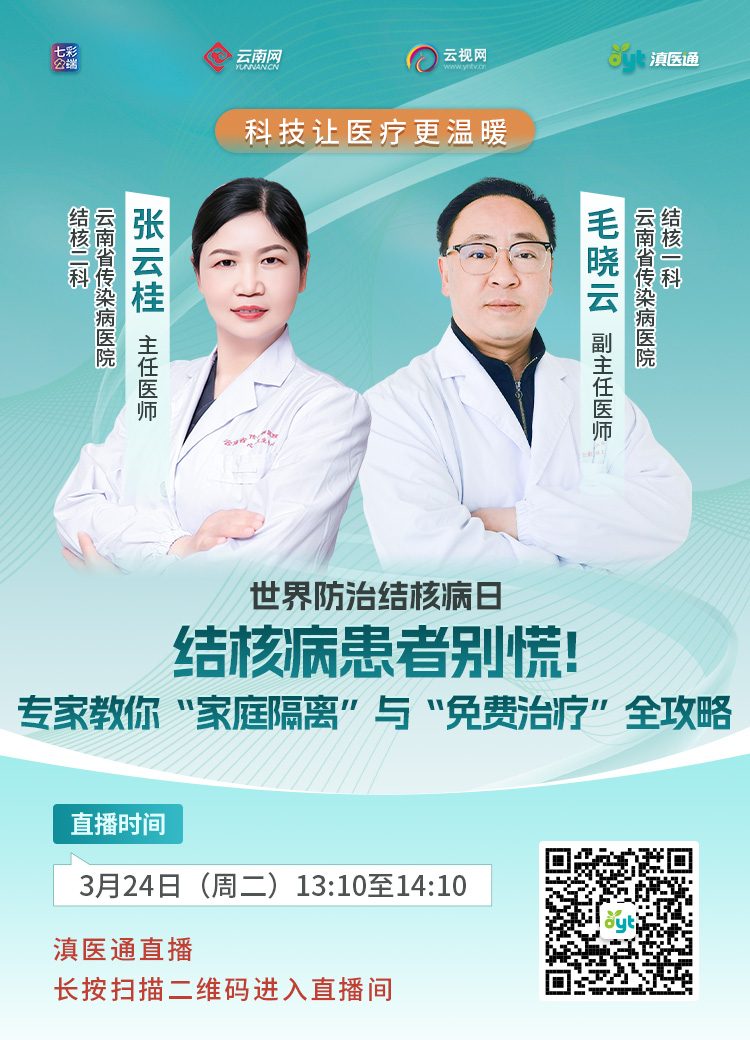 3月24日(周二)13:10至14:10,专家做客滇医通直播间为您解答,欢迎扫码观看。